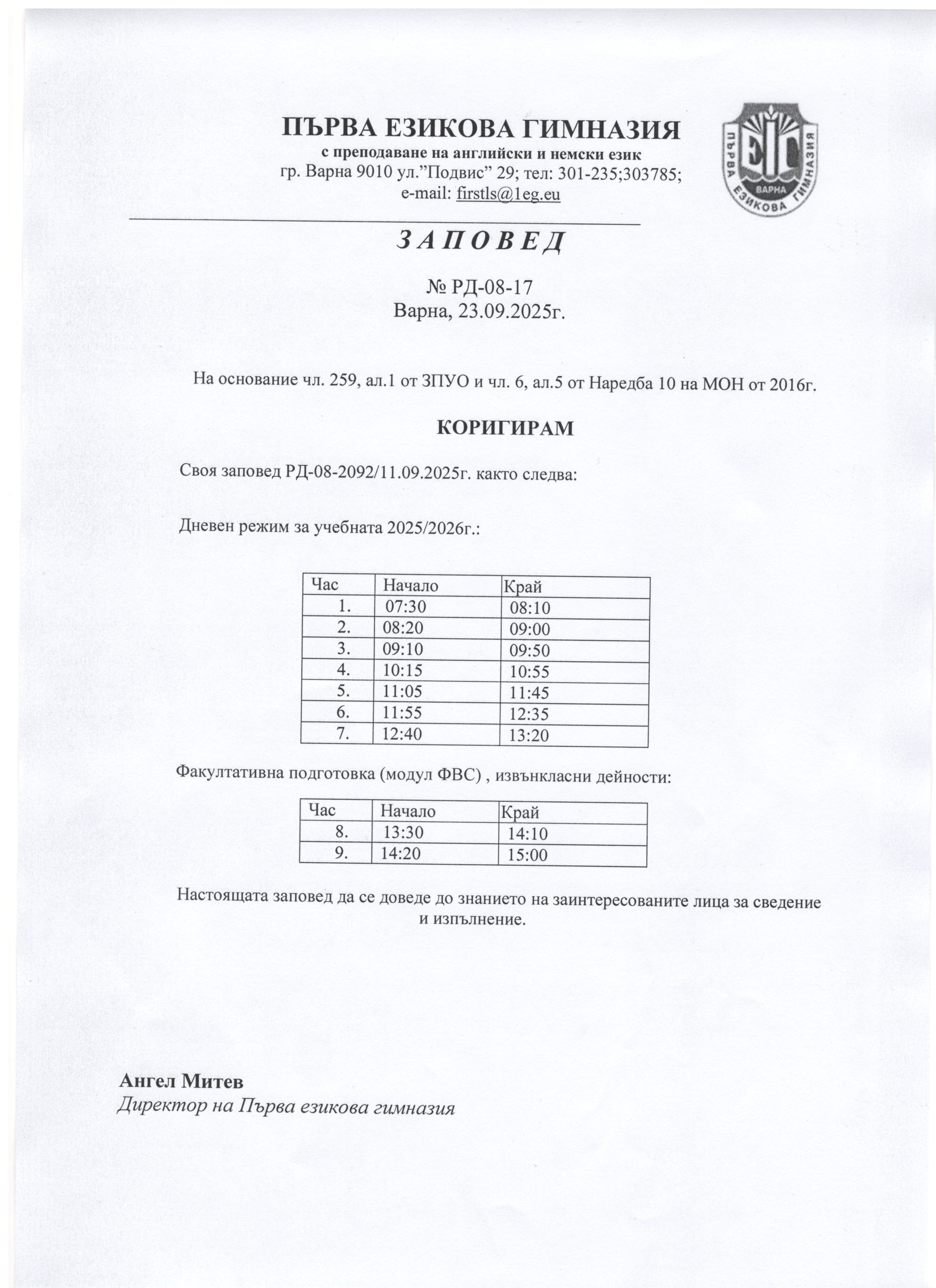 Списъци на 8.клас по паралелки за учебната 2025-2026 година