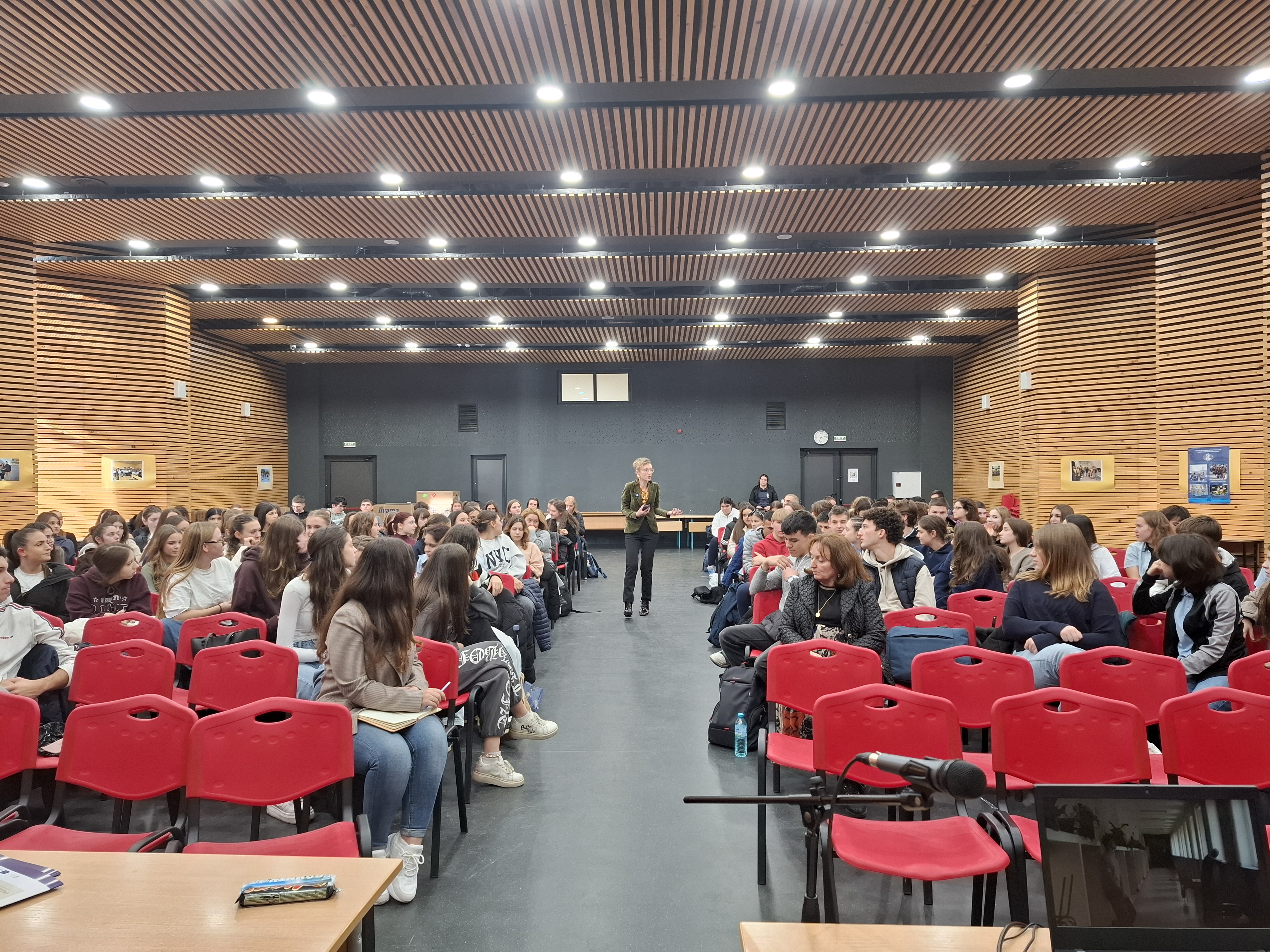 На 03 декември 2025 година актовата зала на Първа езикова гимназия бе изпълнена с особен вид вълнение. В рамките на открита беседа д-р Юлия Раданова (бивша възпитаничка на гимназията и председател на Института по медиация и управление на спорове ИМЕУС - https://imeus.bg/) представи „Другата гледна точка“ – първият късометражен филм в страната, посветен на училищната медиация на титулованите режисьори Петър и Невелин Вълчеви. Филмът онагледява как един училищен конфликт може да бъде разрешен чрез способите на училищната медиация от специално обучен за целта медиатор-ученик. Медиацията в училище може да бъде ценен способ за решаване на предизвикателни ситуации без прехвърляне на вина, чрез задълбочено изследване на ситуацията, емпатия и поемане на отговорност. Представеният филм е част от проекта INSP-NP-058 „Изграждане на мостове: обединени училища срещу агресията сред деца“, част от инициативата INSPIRE – „Подобряване на националната подкрепа за превенция, интервенция и отговор на насилието над деца, и овластяване на жертвите“, проект, съфинансиран от Европейския съюз и Фондация „Работилница за граждански инициативи“. Същият е публично достъпен на YouTube канала на организацията https://youtu.be/P1RH80jkLVE?si=gkqiS9Bn2XhmdQFT