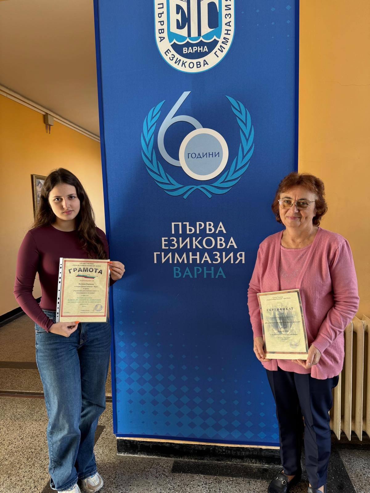 Поздравяваме Калина и нейния преподавател Нела Димова за заслуженото отличие!