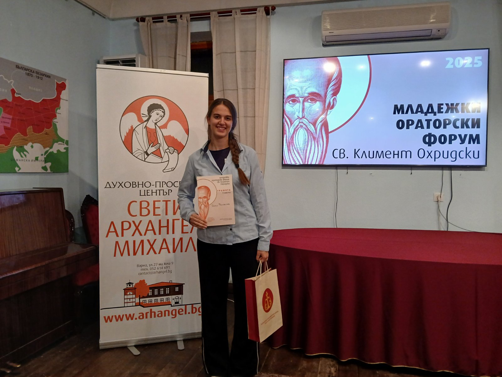 На 6-ти ноември в сградата на Първа езикова гимназия се проведе затвореният кръг на Младежки ораторски форум „Свети Климент Охридски”, организиран от Духовно-просветен център „Св. Архангел Михаил” и община Варна. Конкурсът цели да развие ораторските и лидерските умения на младежите, както и разпространяването на историята и християнските ценности на българския народ. Първата реч бе по зададена тема: „Значението на Покръстването на българите за българската история“ и е посветена 1160 годишнина от приемането на християнството от свети цар Борис и създаването на българската християнска държава.