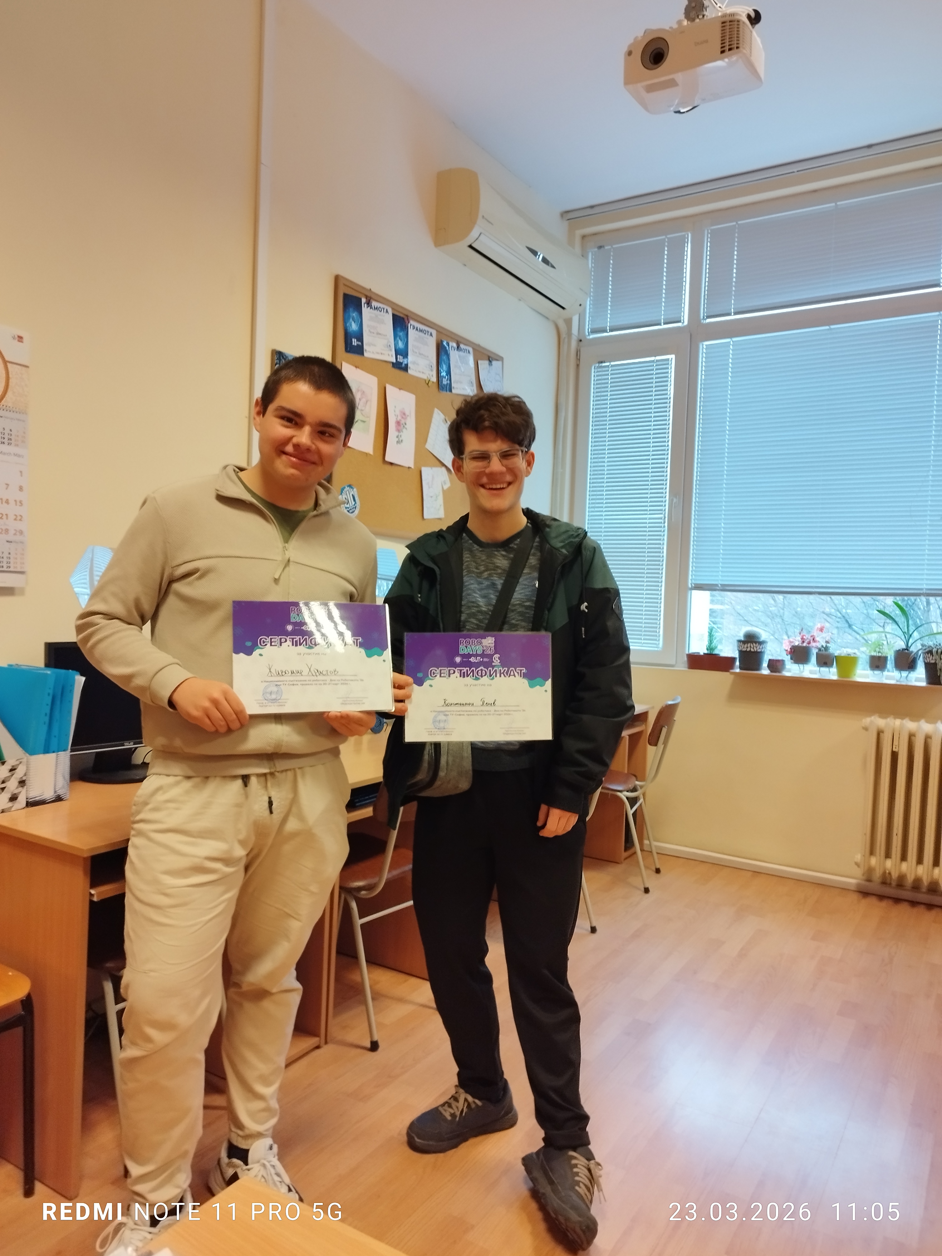 Виктор Желев от 9а клас, Даниел Тодоров от 9а клас, Мария- Магдалена Манолова от12д клас, Радина Русева от 8з клас се представиха отлично.