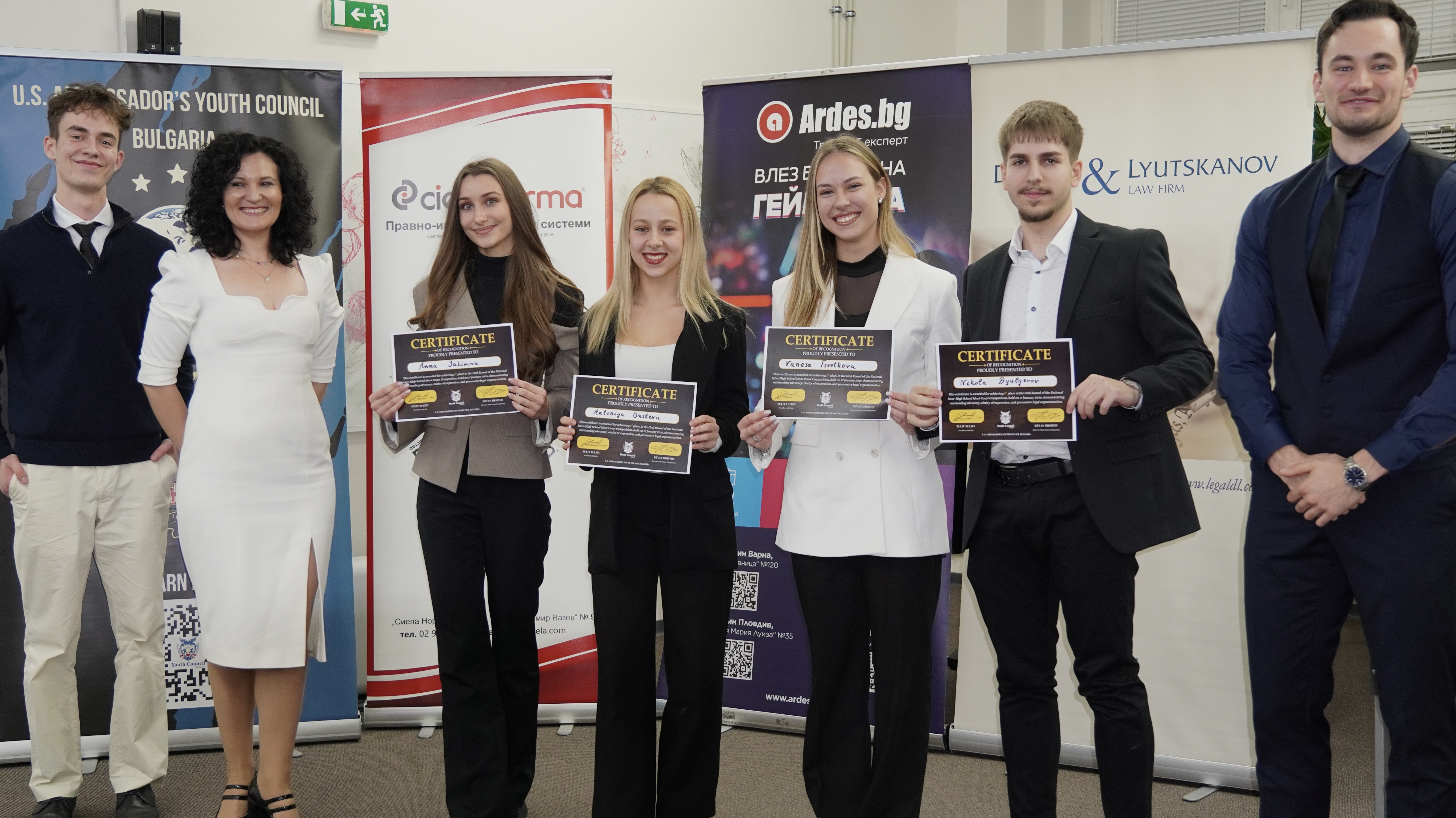Отборът в състав: Антония Душева – 12.г клас, Ванеса Цветкова – 12.и клас, Никола Дюлгеров – 11.и клас и Анна Якимова – 11.е клас, спечели първо място сред 86 отбора от цялата страна в състезанието Moot Court. Състезанието представлява симулация на реален съдебен процес, при който участниците влизат в ролята на адвокати, подготвят правни аргументи и ги защитават устно пред жури, подобно на истински съд. Освен устната защита пред жури, отборите подготвят и писмен правен доклад по казуса, в който представят аргументите си, както се прави в истинската съдебна практика. Оценяват се правните знания, логическото мислене, екипната работа и умението за публично представяне. Като част от наградата отборът получи и достъп до онлайн курс на Харвардския университет по темата за защита на личните данни и технологии (Data Privacy and Technology).