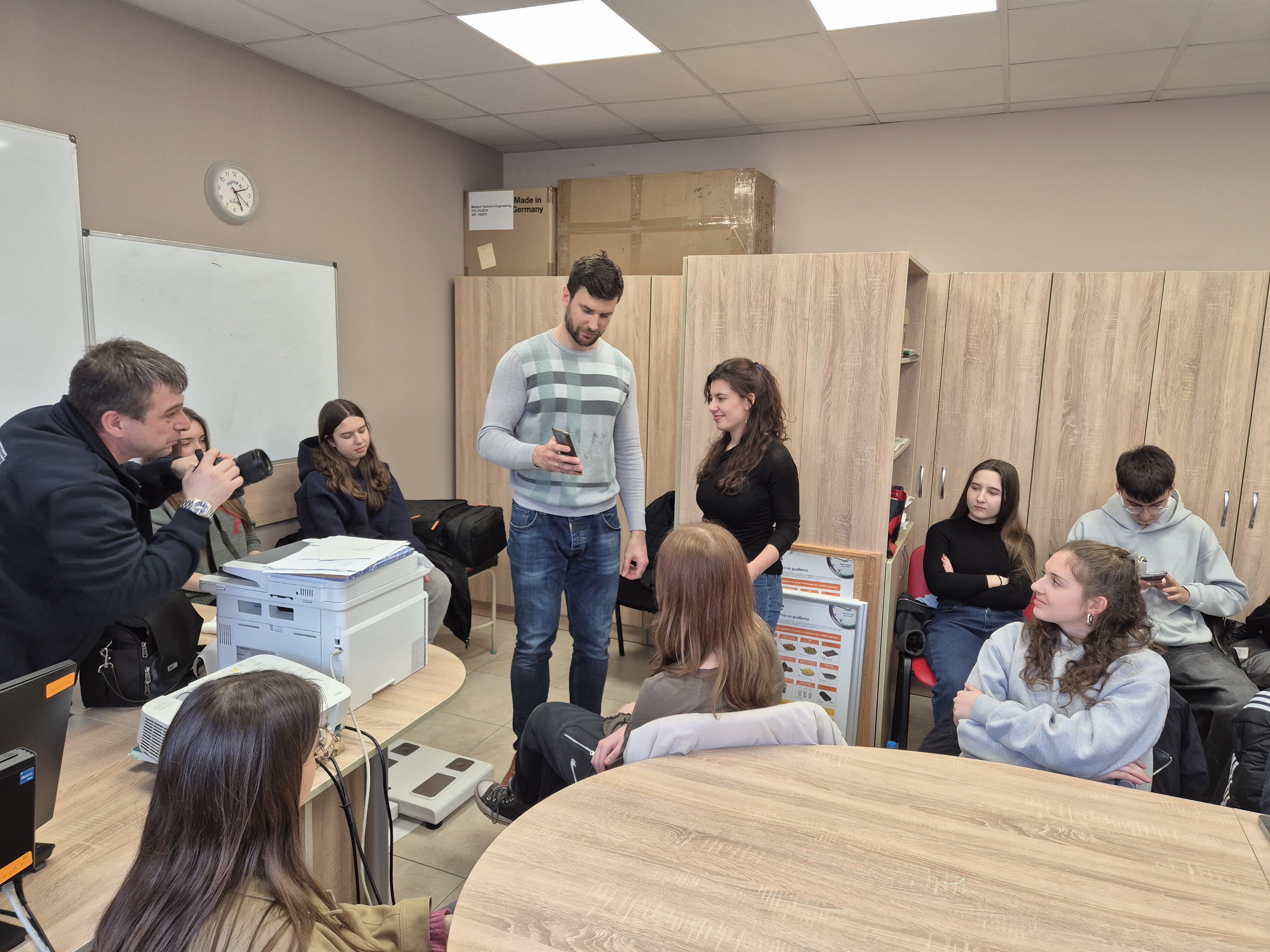 На 09.02.2026 година с учениците от ПП по химия и ООС от 12. клас с преподавател Маргарита Димитрова посетиха катедрата по хигиена и епидемиология към факултета по обществено здравеопазване в Медицински университет „Проф. д-р П. Стоянов“- Варна. Обсъдиха се теми и се направиха изследвания със съвременна апаратура за оценка на хранителния статус, контрола на общественото здраве и влиянието на околната среда върху човешкото здраве с преподаватели от МУ. Бяха поканени представители от телевизията на МУ - Варна за кратки интервюта и запис на част от дискусиите.