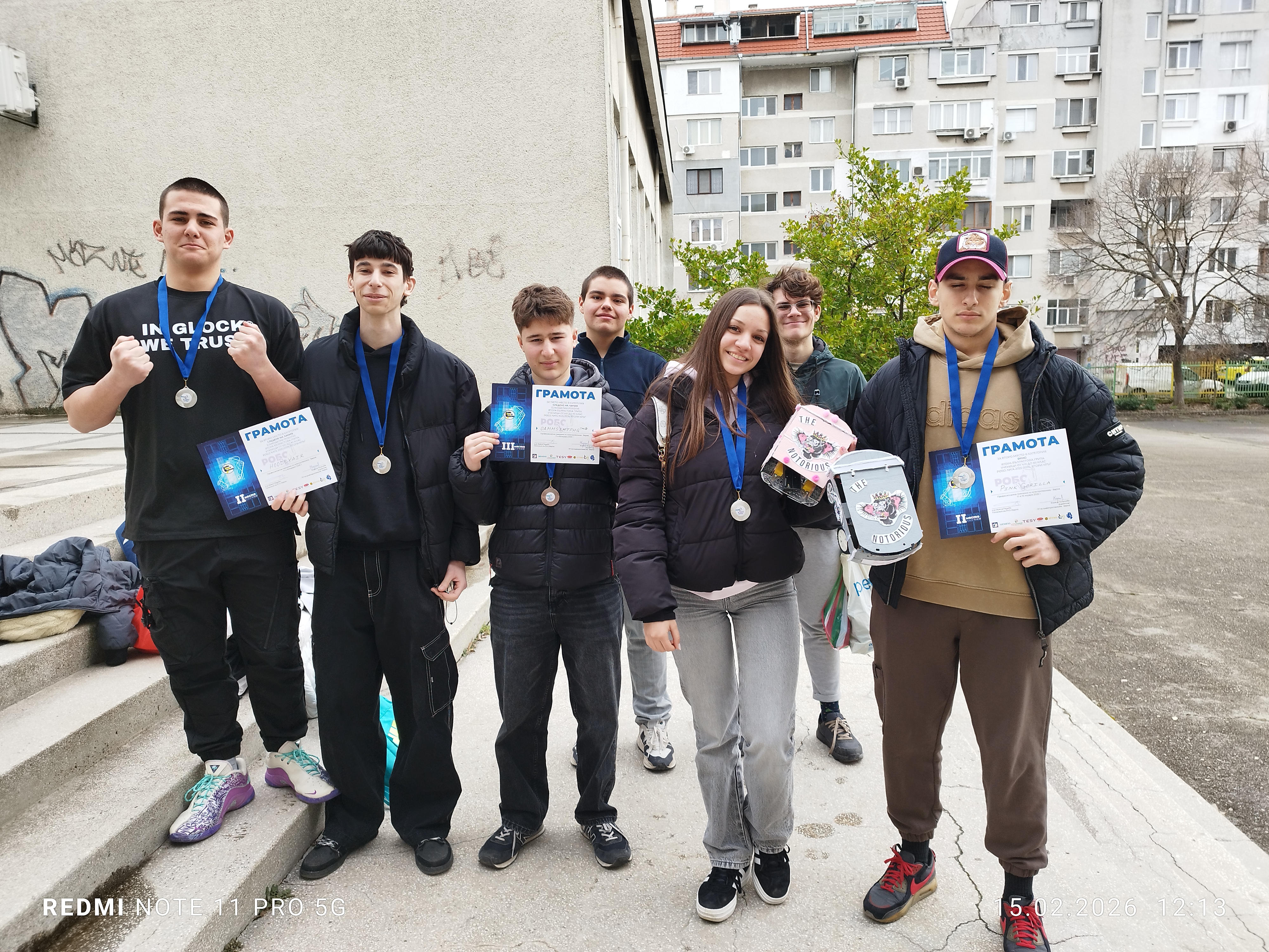 Отбор OAMMSXMTPHGTM® (Николай Тодоров и Кристиан Милчев от 9.д) зае III място в категория СЛЕДЕНЕ НА ЛИНИЯ (САМОДЕЛНИ РОБОТИ).